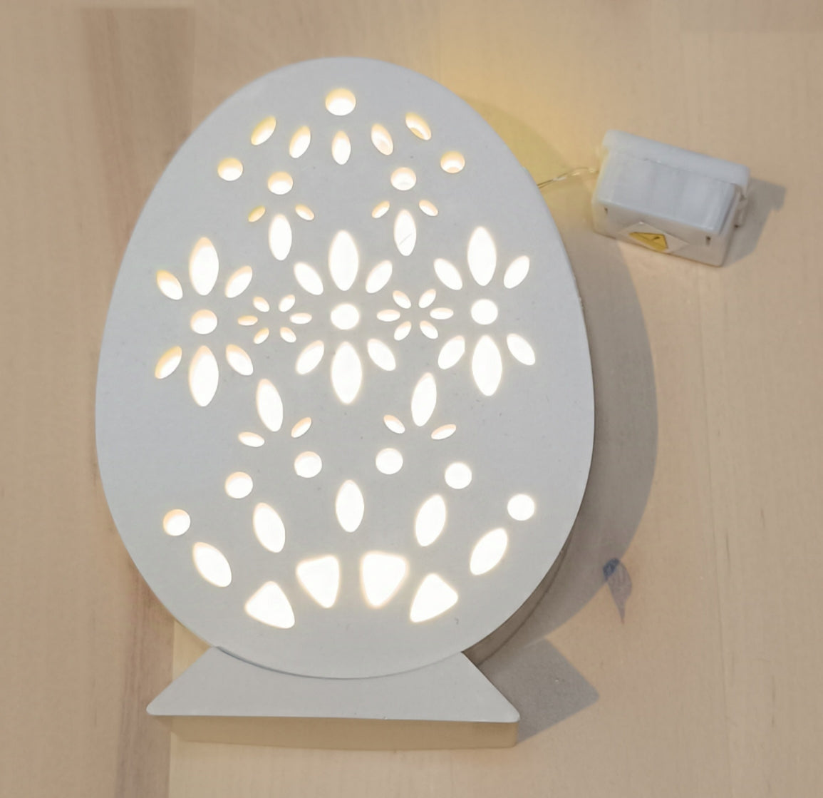 Ein handgefertigtes Osterei aus Keraflott, kombiniert mit Transparentpapier für eine warme und stimmungsvolle Beleuchtung. Das Ei wird von einer kleinen LED-Lichterkette beleuchtet (separat erhältlich) und eignet sich perfekt als Osterdekoration oder als liebevolles Geschenk. Wähle aus 5 Motiven aus und bringe Osterstimmung in dein Zu Hause.