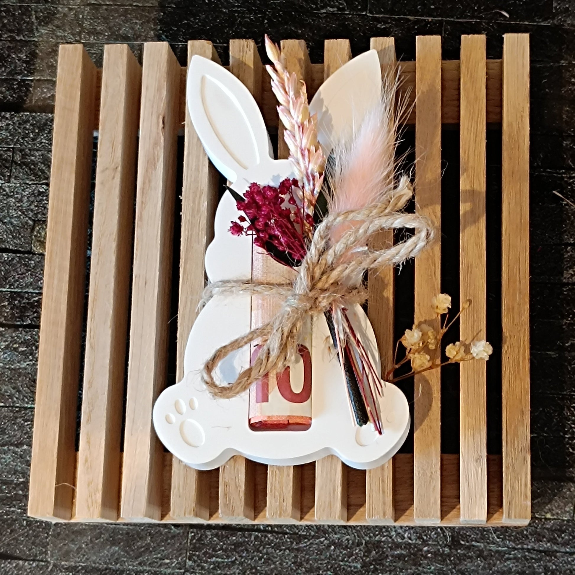 Dieses süße Häschen ist ein tolles Mitbringsel bei einer Einladung zu Ostern. Einfach Schokolade hinein tun oder einen Geldschein und verschenken.